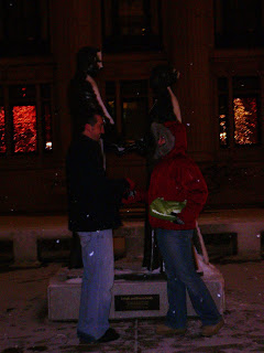 Saturday night we took our annual Temple Square to see the lights trip. It was super cold because it finally decided to start to snow, now that it is the middle of December. But it was fun walking around with the snow falling down. Jeff and Kitani came with us, and we had a blast. I think that I might have embarressed everyone because I was dancing and leaping around. I was just trying to stay warm!!!